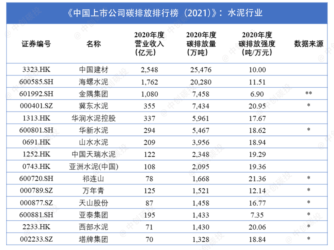 中创观点|“上市公司碳排行榜”专题洞察之二:水泥行业