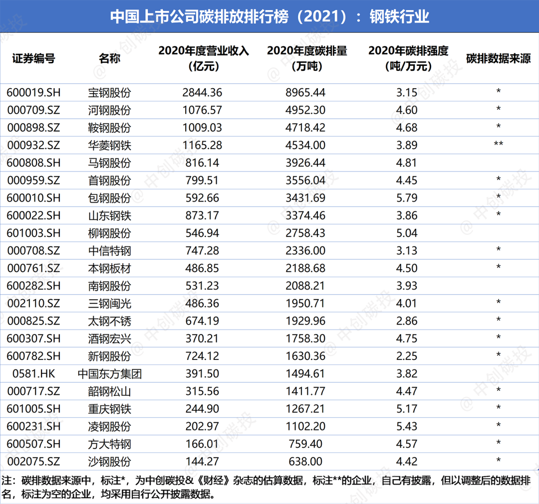 中创观点|“上市公司碳排放排行榜”专题洞察之三:钢铁行业