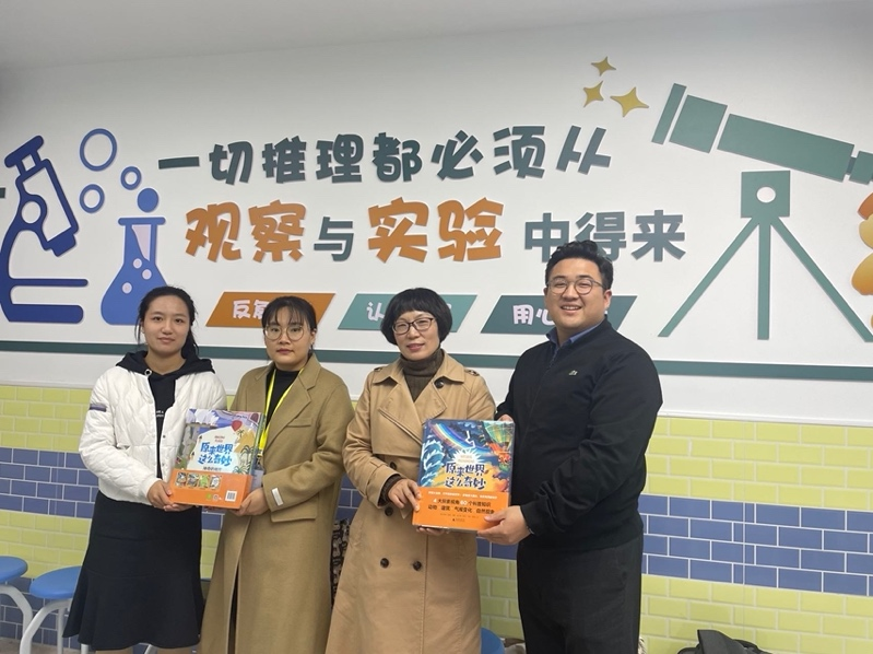 无锡市生态环境局大气处张璐璐、学校张明凤校长及科学组教师一同参与此次活动。课后,北京中创碳投教育咨询有限公司和无锡市生态环境局代表共同向学校赠予了气候科学科普读物。