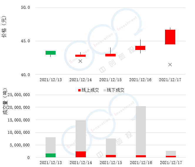 - 首个履约周期将于12月31日截止,随着全国碳市场第一个履约周期截止日期的临近,重点排放企业交易意愿上涨,交易活跃度逐渐上升。